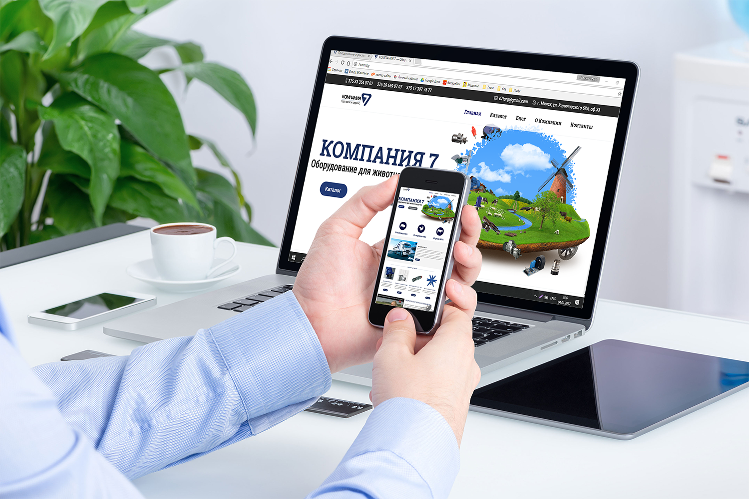 Разработать стильный адаптивный сайт-каталог для компании, с удобной системой навигации и хорошей оптимизацией, придерживаясь корпоративного дизайна и фирменных цветов (белый, синий, темно- серый). Поскольку, основной потребитель, на которого ориентирован сайт- фермерские хозяйства и животноводческие комплексы, одной из приоритетных задач стала разработка «легкого» мобильного дизайна, который будет быстро загружаться на любом устройстве даже при самой низкой скорости интернета.