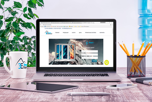 Перед нами стояла задача- создать не просто сайт для компании, занимающейся разработкой пластиковых окон, а корпоративный стиль, который будет годами сопровождать бизнес и станет его лицом. Для Эверест Еврострой мы занимались не только созданием сайта, но и изготовлением дизайна для визиток, бланков и мерчендайз- продукции.